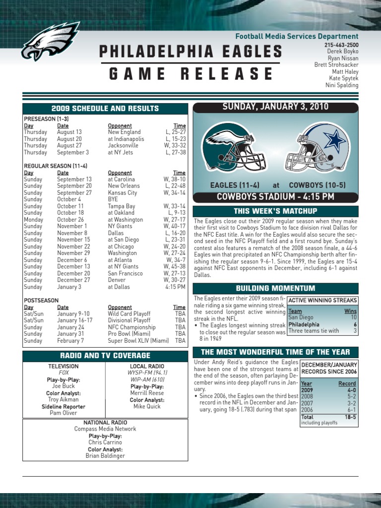 Eagles Vs Dallas Nfl Game Notes Pdf Dallas Cowboys Philadelphia Eagles